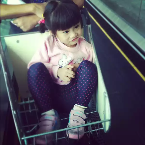 , fell asleep on the plane, and I forgot to put a diaper for a while, and she got wet 。 The shopping cart on the right was proposed by grandma, which can put some things in it, and can occasionally act as Xiaoxin's car, and it really played a role later.