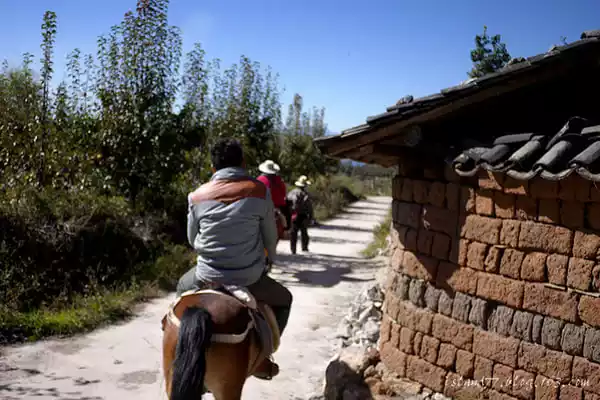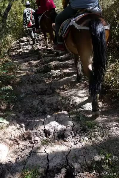 The groom said that this is the old tea horse road, the ancient chama, But it's quite fun to ride a horse and walk in this potholed mud