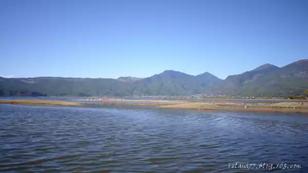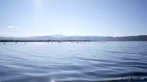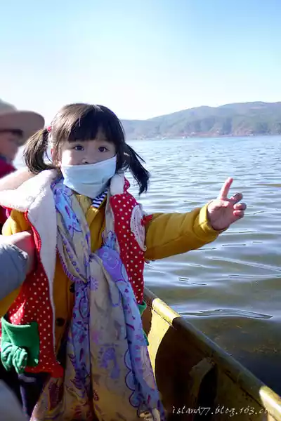 When the boat rowed to the center of the lake, the wind was still quite strong, and it looked so sunny. It's actually a bit cold