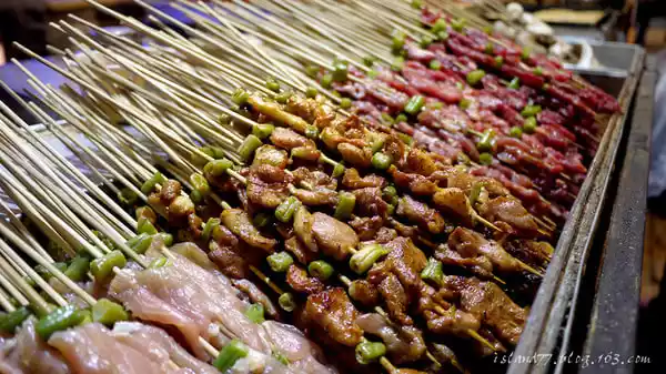 Back in the ancient city, the sun is about to set... Today is the last night in Lijiang, and I went out with my husband to eat some barbecue in the evening...