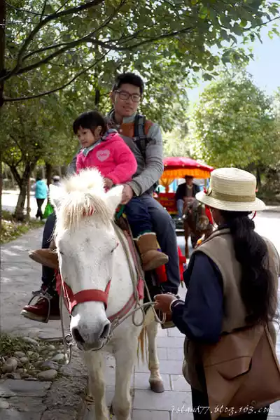 After walking in, there is a large parking lot, there is still some distance from the ancient town, there are many carriages and horses outside the door, Xiao Xin is very excited when he sees it, he must ride, so he let him ride with Baba, I and my grandmother and grandma take the carriage, these are all bargains, I think the horse riding is 20, the carriage is 30.