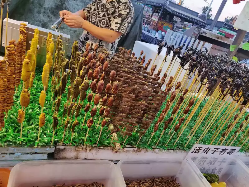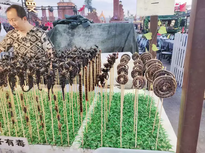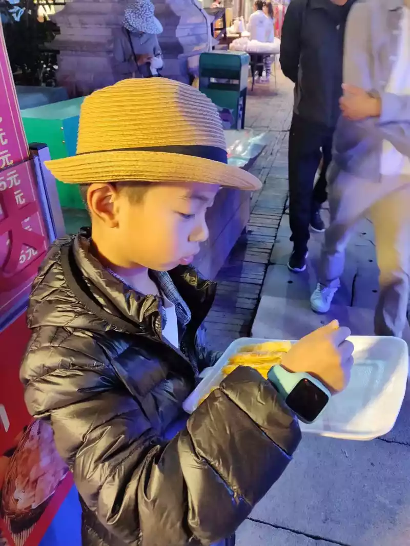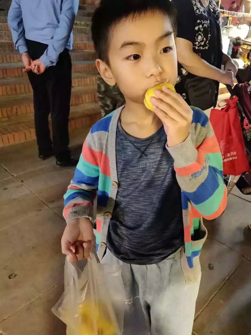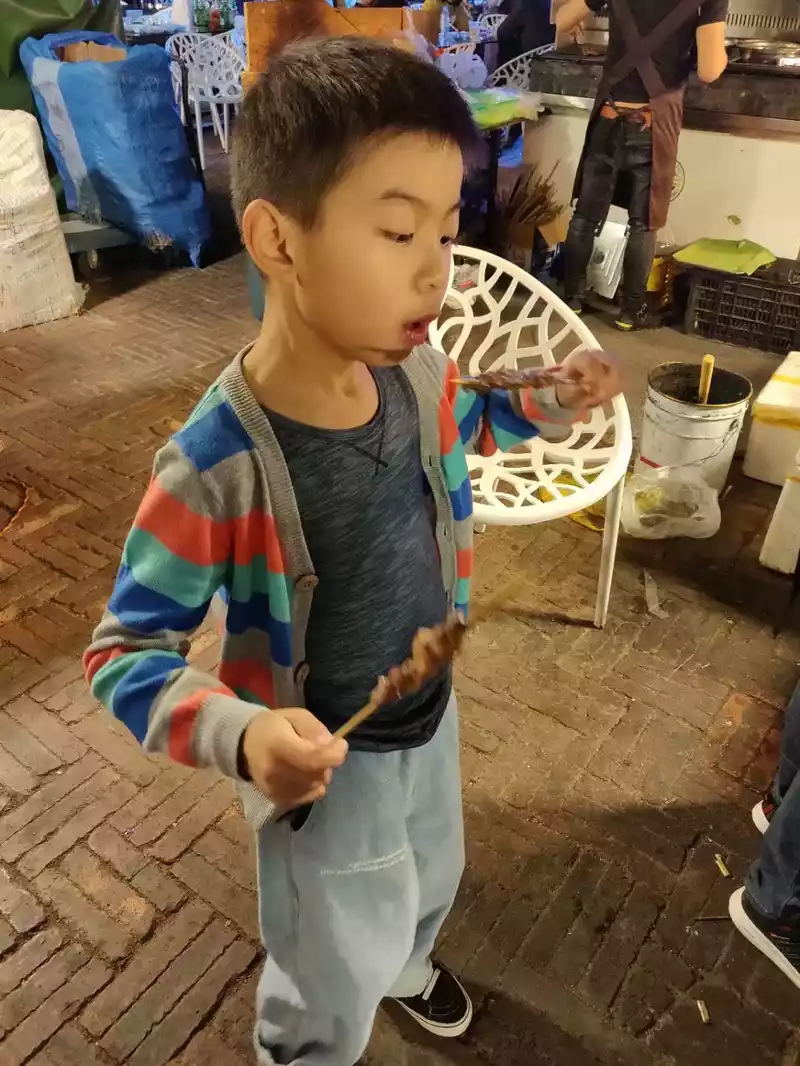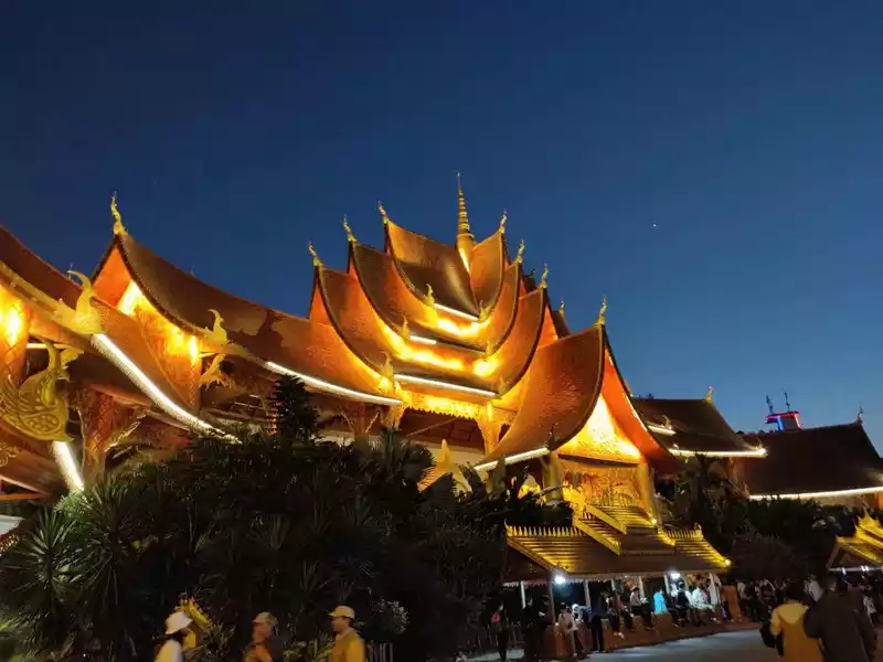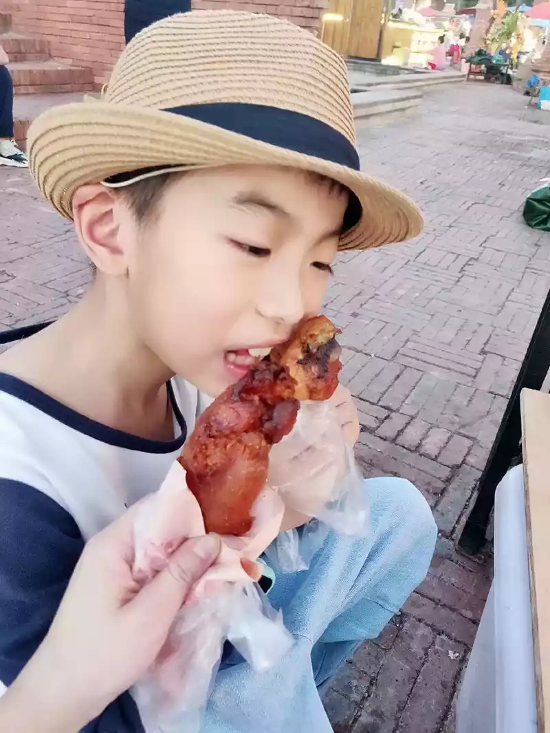 Hefei flew to Banna at half past 7 p.m., which is very gratifying, this time Western Airlines is very punctual. The hotels booked by China-TravelNote basically have a pick-up service, and it takes about 30 minutes from the airport to the hotel. My son and I put down our luggage and went to the Starlight Night Market, walking for more than ten minutes. On the way, you will pass by the Big Buddha Temple, and through the Big Buddha Temple, you will see a large night market. The first time I saw such a big and spectacular night market, I was a little shocked. There was a dazzling array of gadgets to eat and drink, and my son chose pineapple rice, lamb skewers, coconut juice, barbecue and jackfruit.