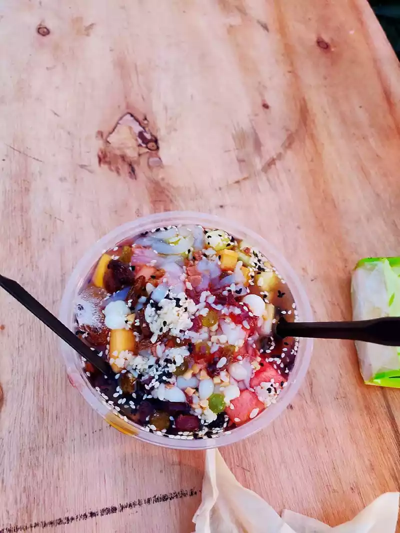 Da Luo and Wangtianshu have different directions. Daluo is the border between China and Myanmar, and the more famous attractions there are unique forests. Wangtianshu is also an Internet celebrity check-in place, mainly to see the tropical rainforest scenery. Both attractions are very far away, the round-trip time is relatively long, and the charter fee is too expensive, which is more suitable for day trips or through trains. The border in my son's heart is surrounded by walls as high as the Great Wall, and in order to see is believable, we chose to take a one-day trip to Luo. There will be two points for group and through trains, one is Jinghong City, and the other is the gate of Gaozhuang. The inn is about 15 minutes away from the gate of Gaozhuang, and I got up at 6 o'clock in the morning and gathered at 7 o'clock to set off. Along the way, the tour guide told a lot about the growth history of Banna, which was very interesting and gave me more understanding of Banna.The tour guide's father is Han and his mother is Dai, and he also told about the contributions of Shanghai educated youth to Banna in the past. Arriving at the China-Myanmar border at 10 o'clock, it was very cold in the morning, and my son had a long T and a thin down, barely okay. The China-Myanmar border took a group photo, and in 20 minutes, everyone gathered to go to the unique forest scenic spot. Arrive at the scenic spot, led by the local guide to visit and explain, about 2 hours. The battery car is 40 yuan per person and is not included in the tour fee. First, I looked at the Shwedagon Pagoda of China-Myanmar Friendship from a distance, and felt the two countries on foot. Finally, we arrived at the solitary forest scenic spot, which is a big tree composed of 36 several roots, which is spectacular. At the end of the play, there will be a ladyboy show. At about 1 o'clock, follow the group to eat a group meal, and it's okay to be not too picky. On the return trip in the afternoon, we have two points: one is to visit the Hani people and introduce authentic Pu'er tea; The other is a rubber factory, introducing latex mattresses. I don't want to join the group, but I have to say that I have learned a lot and understood a lot about these two points. Nannuo Mountain is the birthplace of Pu'er tea, and the Hani village is not open casually. In Nannuo Mountain, the Hani guide led us to understand the Hani people and their customs (no photos are allowed under the eaves, and the rest is not too particular), explaining the history and development of Pu'er tea. The village we visited was also the only village open to tourists, where we tasted the Pu-erh tea they picked themselves, raw, cooked, big trees, old trees, whether they bought it or not, they watched it themselves. When you are about to arrive in the city, you will pass by the sixth rubber factory, and the time here will be longer, about 2 hours. The first 1 hour has a variety of understanding of rubber, and will do various experiments, some of which are experiments that do not dare to be done elsewhere, but also do allow tourists to have a deeper understanding of latex, and have a better understanding of how to identify the content and benefits of latex. Whether to buy or not is still up to you, but you can only leave at some point. We arrived in Gaozhuang at about half past seven, and still went directly to the Starlight Night Market to forage for food.