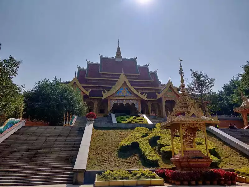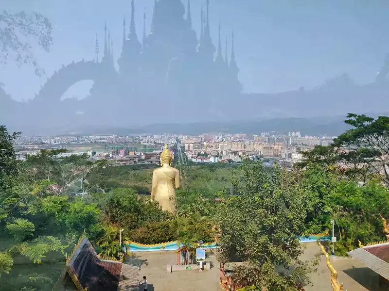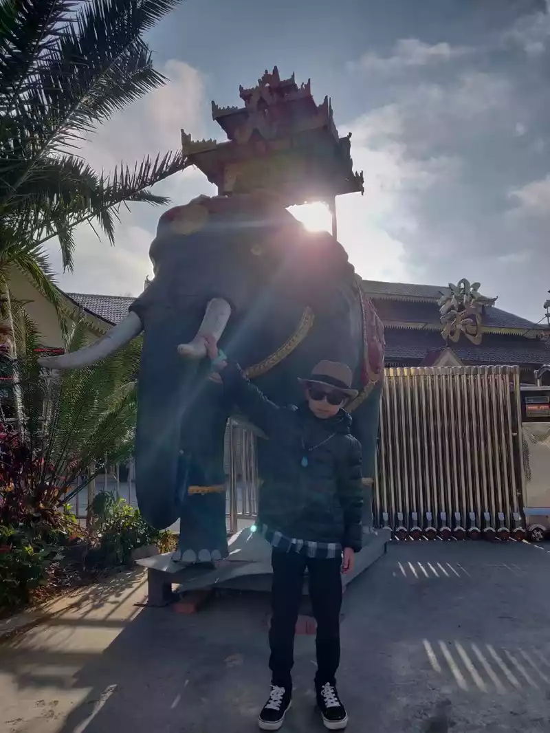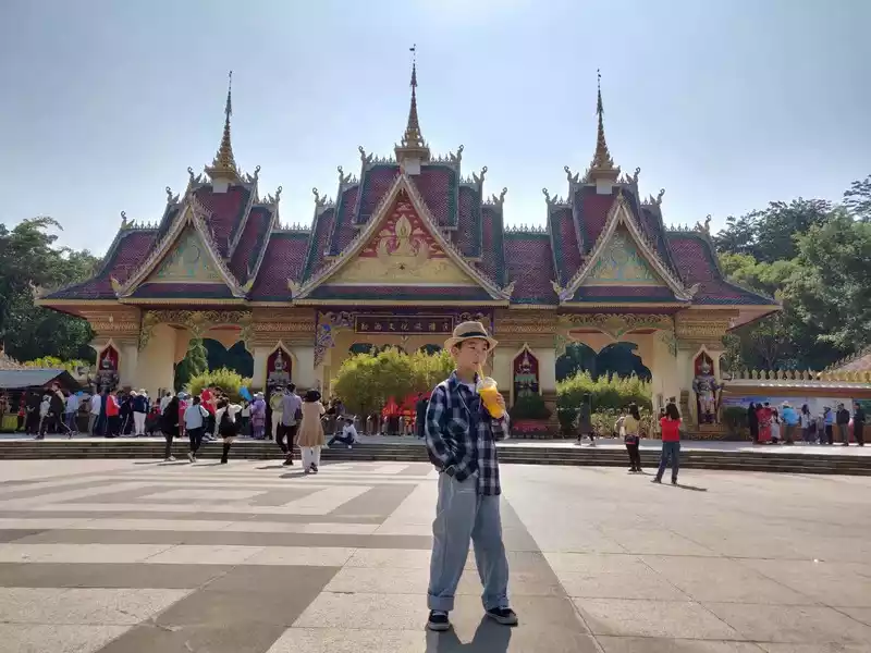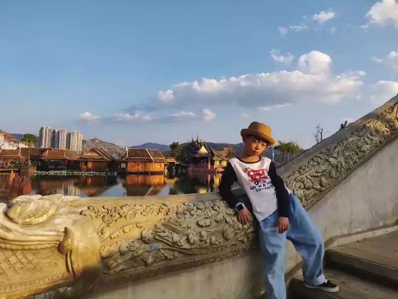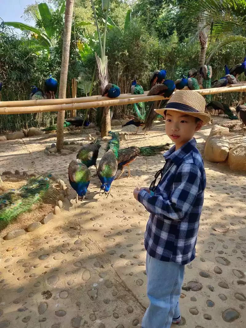 On the last day, we slept until we woke up naturally, packed our luggage and put it directly in the chartered master's car. Today, it is mainly the attractions of Jinghong City, the Great Buddha Temple and Manting Park. Arrived at the Big Buddha Temple around 11:30 and ate casserole rice noodles at the door, although it was a very simple stall, but the taste was very good. After entering the gate, a staff member persuaded him to buy a battery ticket. I personally don't think it's necessary. After entering the gate at about 12 o'clock, I went directly to the peacock garden and fed and took pictures for 10 yuan. At 1 o'clock, 3 o'clock, and 5 o'clock, the peacock was released, and we waited until 1 o'clock to finish the peacock release and start climbing. The mountain is not high, and my son and I took pictures while walking and descending the mountain at about 2 o'clock. Just in time for the water splashing activity, the water splashing activity started at 2 o'clock and started at half past two. Hurriedly rented props for his son, with a deposit of 100 yuan and a rent of 40 yuan (including clothes, slippers, and small basins). At first, the son was a little twisted, but in the end he refused to leave the field.It took about 3 hours to reach the Great Buddha Temple, and it was about 3:30 to arrive at Manting Park. Manting Park used to be the back garden of King Dai, which was very beautiful and comfortable, and there were also Internet celebrity check-in photo spots. I have seen the wild elephant show in the Wild Elephant Valley, but I haven't seen it here again, my son and I walked around and chatted and patted, staying for nearly 3 hours. When my son heard that he was going directly to the airport, he couldn't bear to leave.