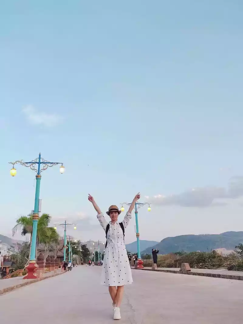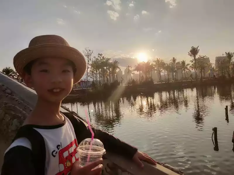 Back at the inn at 4 o'clock, after we rested for 1 hour, we went to the Starlight Night Market again at about 5 o'clock. It is a very normal choice to go early, at the other exit of the Starlight Night Market, across the road is the Lancang River.At this point, the sunset shines on the Lancang River, whether it is along the river road or on the Kong Bridge, every photo has a unique feeling. My son and I looked at each other until dark before we went to forage.