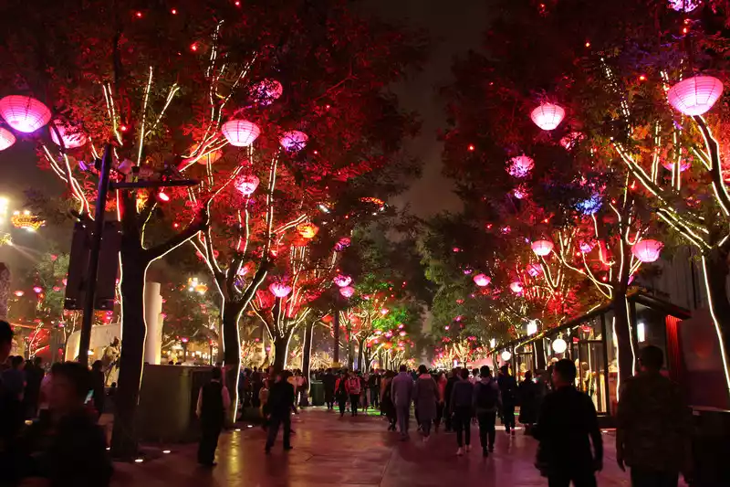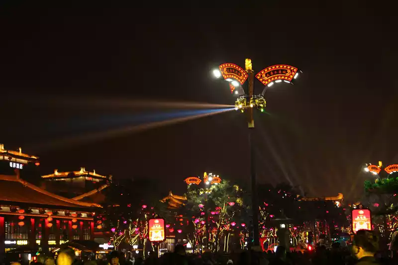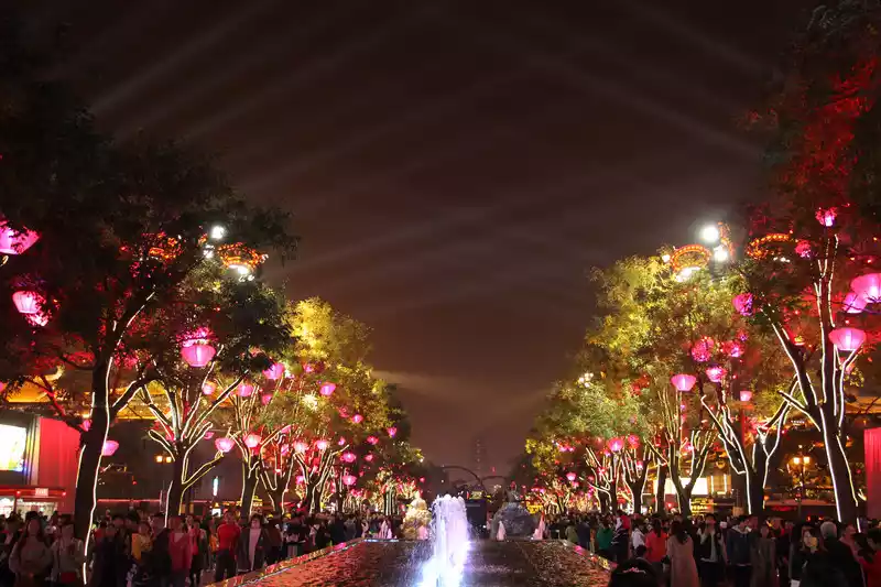 Datang Sleepless City is still very beautiful, at night under the lights are very Chinese, there are many people, the whole street is very long, while walking around can walk for about 1 hour.