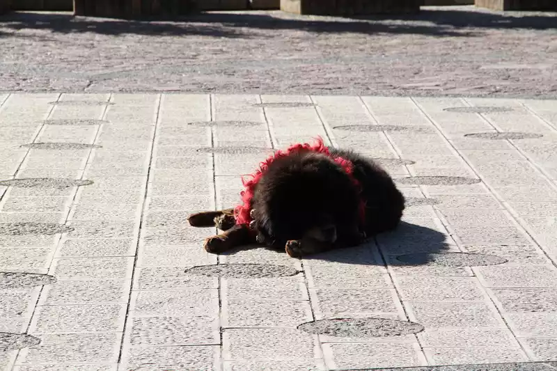 Tibetan mastiff was lazily crawling in the sun in the square, although it looked docile, but no one dared to step forward to tease it.