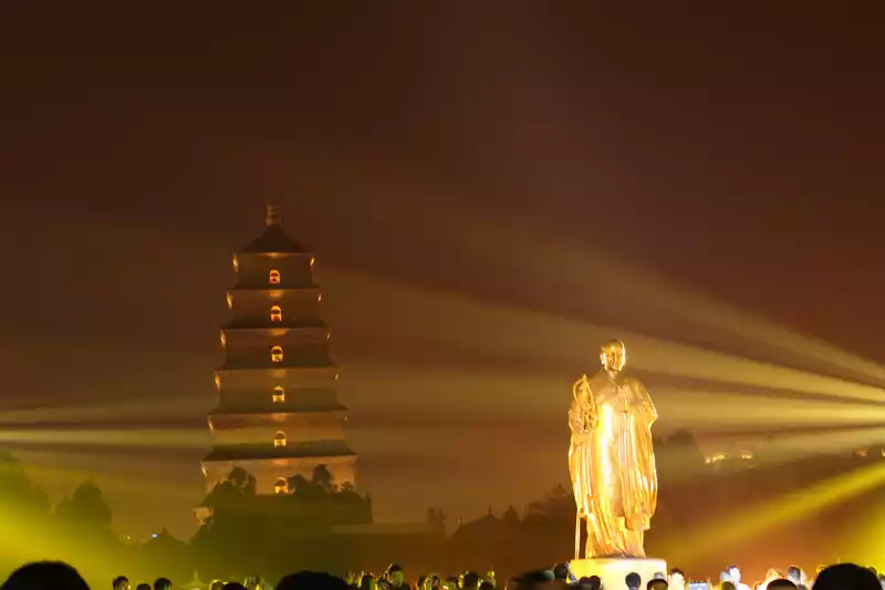 Asnight falls, the Big Wild Goose Pagoda Square also ushers in its peak