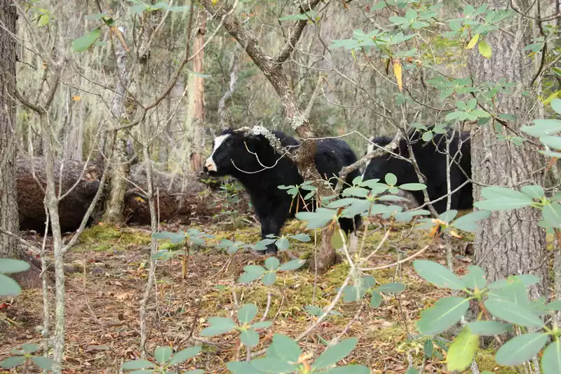 This is shuttling through the primeval forest, and there are cattle and sheep in the woods.