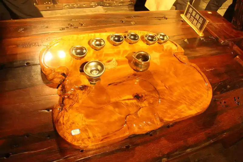 This wood is called golden nanmu, and this set of golden nanmu tables are tens of thousands or even hundreds of thousands.