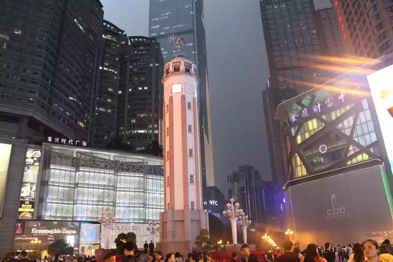Chongqing's nightlife should be very rich. It is already eight or nine o'clock when I return to Jiefangbei Pedestrian Street after visiting Hongya Cave, and the pedestrian street is still crowded with people, and most of them may also be tourists.