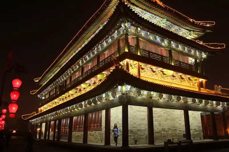 Thereare four main gates in the Xi'an city wall, the east gate (Changle Gate), the south gate (Yongning Gate), the west gate (Anding Gate), and the north (Anyuan Gate), I feel that the Yongning Gate is better, and the south gate is also relatively close to the bell tower, and you can directly see the bell tower at night from the south gate.