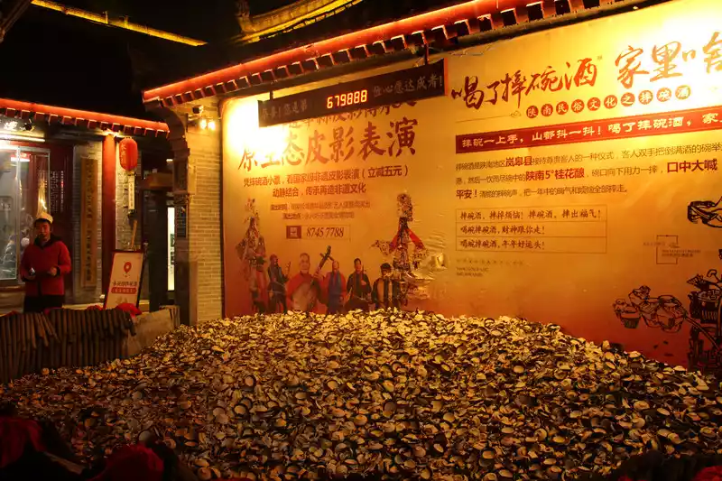 Yongxingfang is near the east gate of the Xi'an city wall, and you can see this area of lights and wine on the city wall at night.