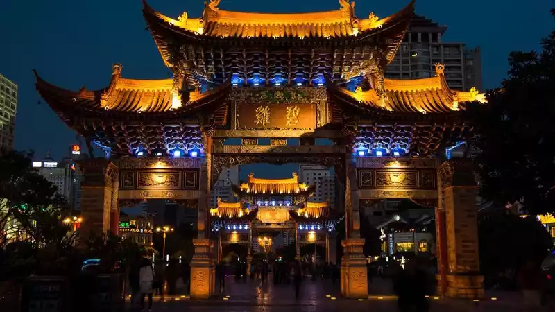 For this first stop, there is not much design, originally planned to go to a café or something, some people are not interested in this, so they can only take a walk around. The roads at night are very quiet, there is not much hustle and bustle of big cities, and occasionally people can be seen dancing around in the park. Walking through Jingxing Street, an ancient street in Kunming, <