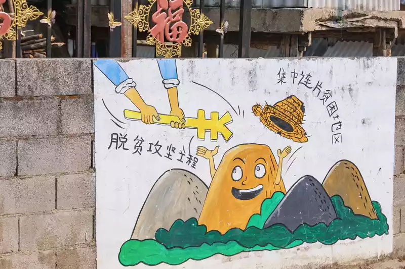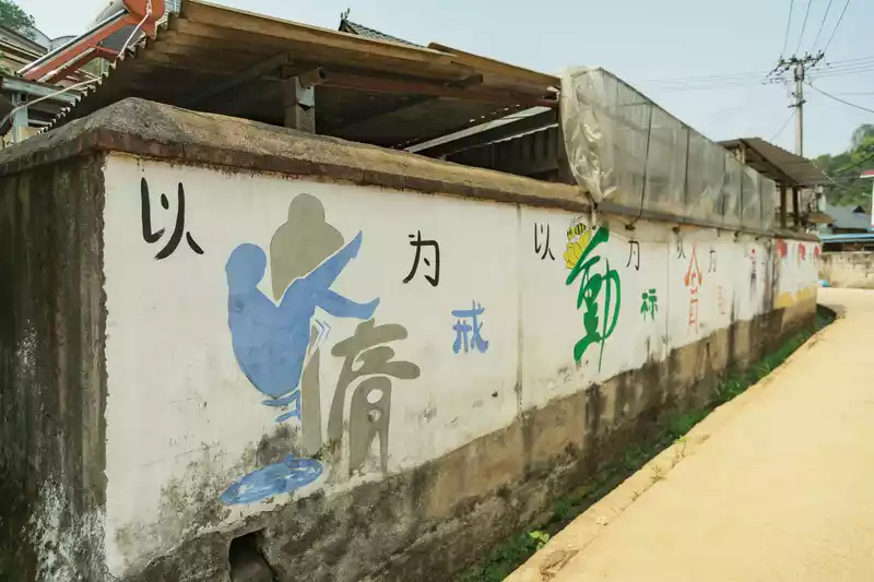 leaving town and following National Highway 214 for a few kilometers, the road splits off on a winding village road. The village roads here are all cement pavements, which is one of the results of the local government's poverty alleviation battle.
