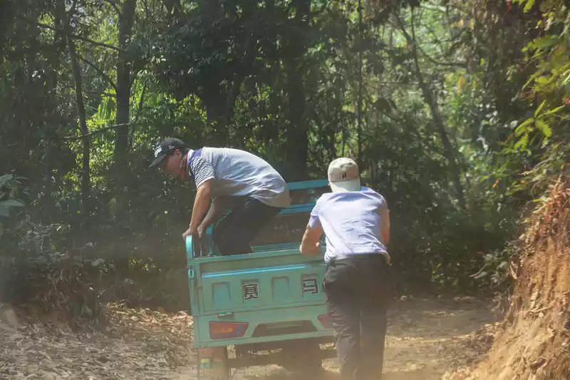 tea mountain of Mangang Village is hidden in the mountains at the end of the southern section of Hengduan Mountain, which the local villagers call Lutang Mountain, with an altitude of about 1,700 meters.It takes nearly 2 hours to hike the mountain, and the requirements for vehicles are very demanding - in addition to fuel motorcycles, only off-road or 4x4 SUVs have the ability to reach the top of the mountain.