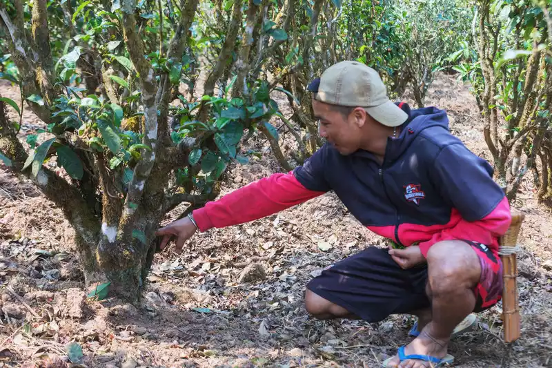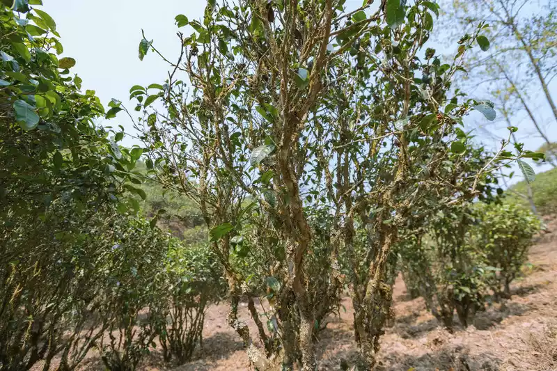 The Pu'er tea trees in Lutang Mountain are neither the large-scale planted terrace shrubs of Manguo Village at the foot of the mountain, nor the tall ancient trees, but the old trees that have been artificially planted and dwarfed - the villagers said that most of the tea trees in this tea mountain are fifty or sixty years old, and a few are eighty, ninety or even a hundred years, and experienced tea merchants can roughly judge their age from the shape of the roots of each tree, so their tea, when tea merchants come to collect tea every year, the price is more than twice as expensive as the terrace tea at the foot of the mountain.