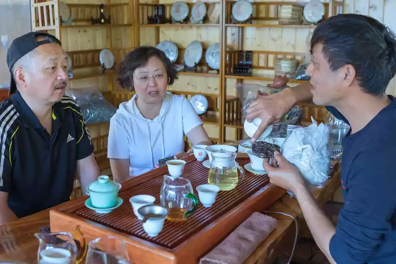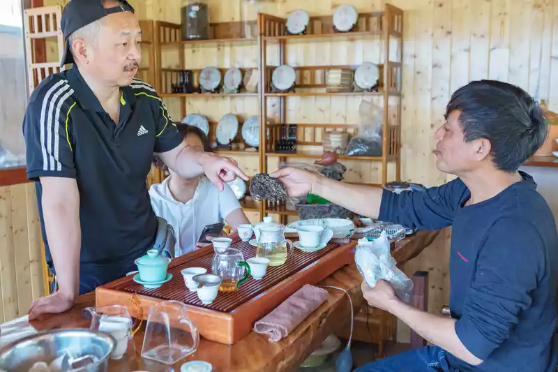 There is a jargon saying when drinking Pu'er: "Beginner looks at the factory, intermediate looks at the mountain, and advanced looks at the tea". Drinking Pu-erh tea, pay attention to "mountain top" - when drinking tea, you should ask about the "origin" of the tea cake and which "mountain" it comes from...... So we spent half a day at the home of a generation of tea farmers in Mangang Village, drinking his family's spring tea this year, last year's black tea and white Pu'er tea, while listening to the tea farmer talk about the "tea classics" of Pu'er tea, from the six major tea mountains of Youle, Mansa, Manzhuan, Mangzhi, Yibang, and Gedenggu to the new eight tea mountains such as Brown, Mannuo, Menghai Mengsong, Nannuo, Pasha, Hekai, Jinghong Mengsong, and Bada; Then there are Pu, Shu Pu, and Yunnan red and even white Pu'er between the two; Then old tree tea, shrub tea, small tree tea, and terrace tea; Then the shape is hair, cake, garden, lump, and scatter; spring tea, summer tea and autumn tea in the production season; Then one leaf and one bud, two leaves and one bud, three leaves and one bud; Then the price is 10 yuan to 100,000 yuan per cake...... Then, the wood has it, because the Pu'er tea culture is really broad and profound - for beginners, listening to tea farmers is like rain, fog and wind!
