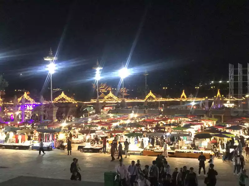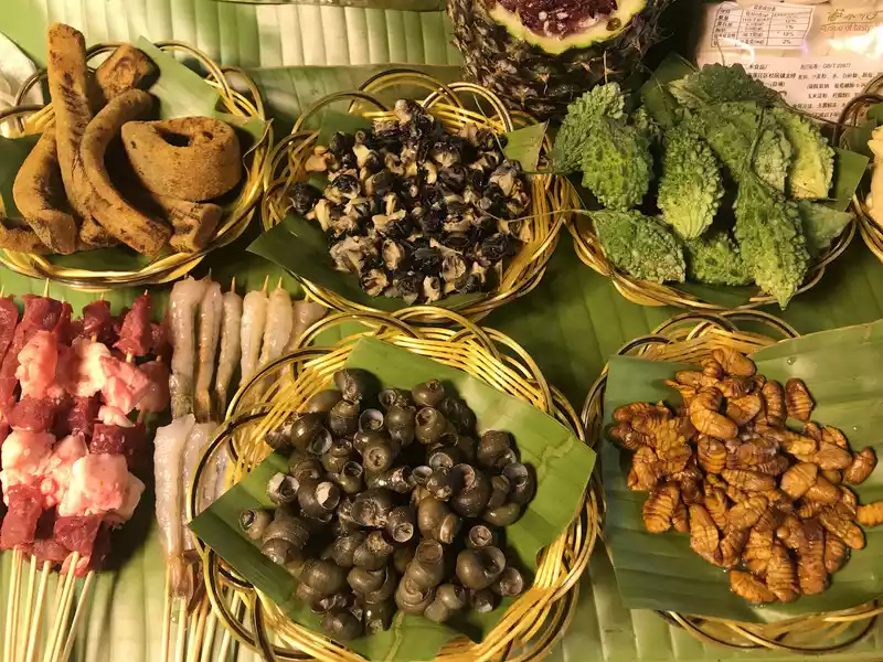 Arrive in Jinghong at night, stay in a hotel near the Shwedagon Pagoda Temple, and visit the night market at night