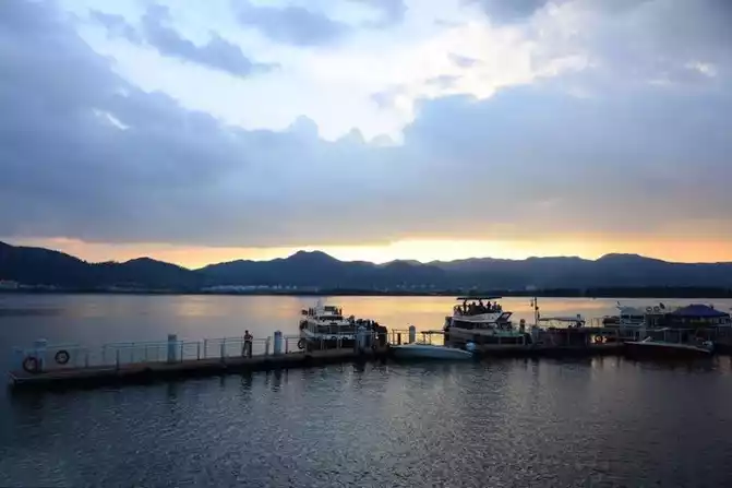 Haigeng Dam in the sunset is suitable for taking pictures, relaxing and in a daze.Watching the sunset at Haigeng Dam, you can see that the color of the clouds gradually changes as the sun sets, from bright gray-yellow to bright blue-purple, and the entire embankment is shrouded in glow, quiet and romantic.