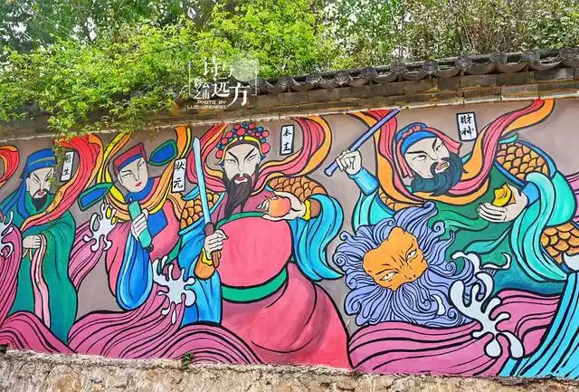 Thomas took us past Nancun, a new socialist countryside full of hand-painted graffiti, and the road was full of surprises, and finally we found that their main temple was located in the village committee. Even the courtyard wall next to the temple is covered with legends about the main lord, in fact, the main lord of the Bai people is the protector of the village, and the main temple is very similar to our "ancestral hall", except that in addition to worshiping the ancestors, the temple also enshrines many gods.