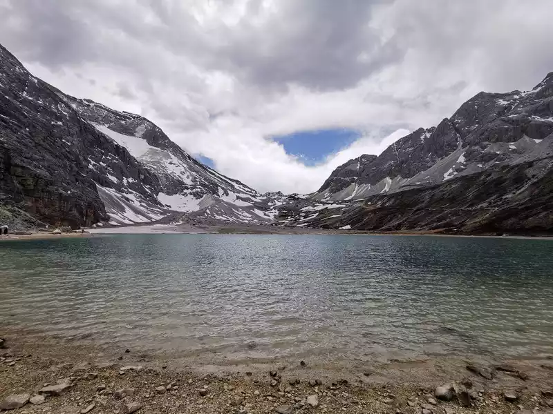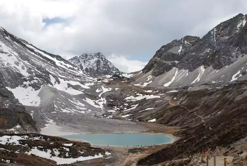 Milk Sea, Tibetan name "Russian Rongcuo", 4,600 meters above sea level, in the mountain hollow of Yangmaiyong Snow Mountain, in the shape of a scallop, because of the blue snow water in the middle, It is named after a circle of milky white water, which is an ancient glacial lake, shaped like a water droplet, surrounded by snow-capped mountains.