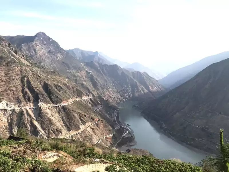 Walk along the Lining Highway, the Jinsha River is under the mountain, and you will have to walk the bridge over the river later.