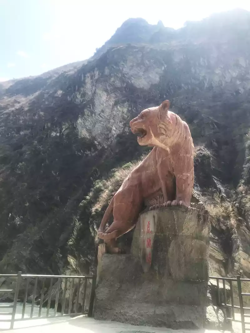 Tiger Leaping Gorge (Lijiang Section) The majestic tiger sculpture by the Jinsha River