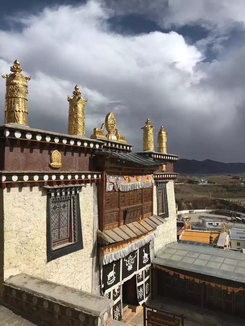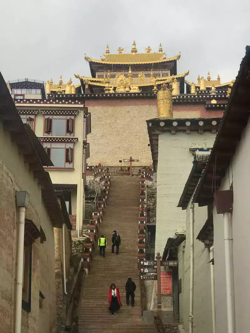 It is still early, and before arriving at the ancient city of Dukezong, I went to Songzanlin Temple, which is the largest Tibetan Buddhist temple in Yunnan Province, one of the famous monasteries in Kham District, and the center of Huangjiao in Sichuan and Yunnan. Songzanlin Temple is built on the mountain, shaped like an ancient castle, which is a masterpiece of Tibetan plastic art and is also known as the "Tibetan Art Museum".