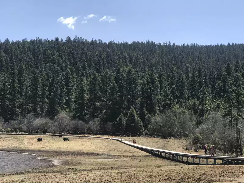 Pudacuo National Park, not all open, enter the gate and take the bus of the scenic spot, about an hour, arrive at the capital lake and get off, Other areas are not open, only by car, in order to reduce the damage to the environment by tourists and restore to the original environment of the past, so the sub-area is open.