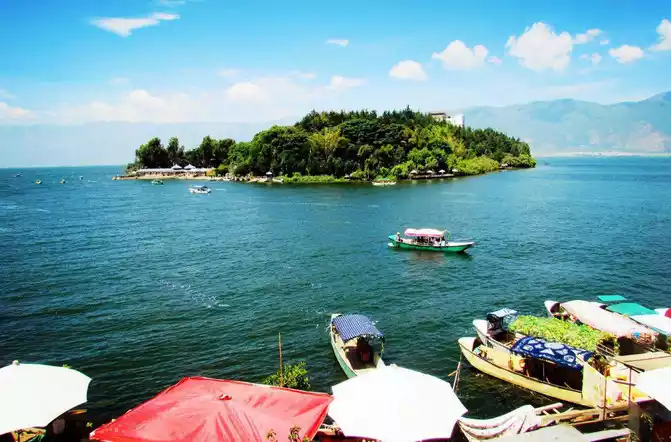 I checked the map and found that there are really many attractions around here. So, I returned along the road I had walked in the morning, met the boatman in the morning at the Erhai Lake, and after some bargaining, I finally spent 60 yuan to get on the boat.