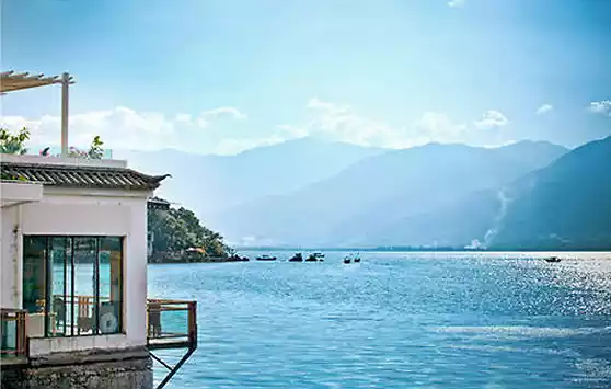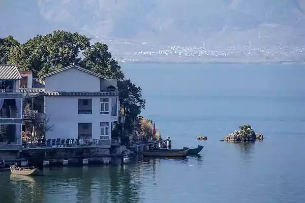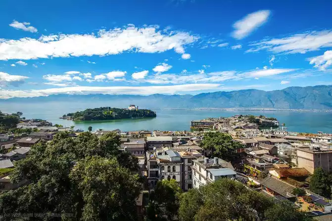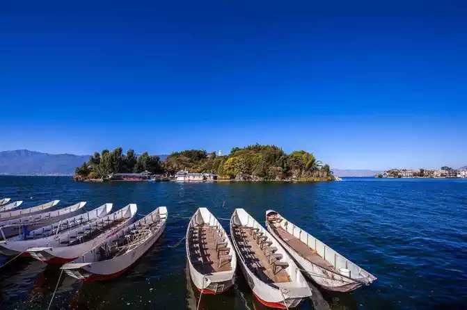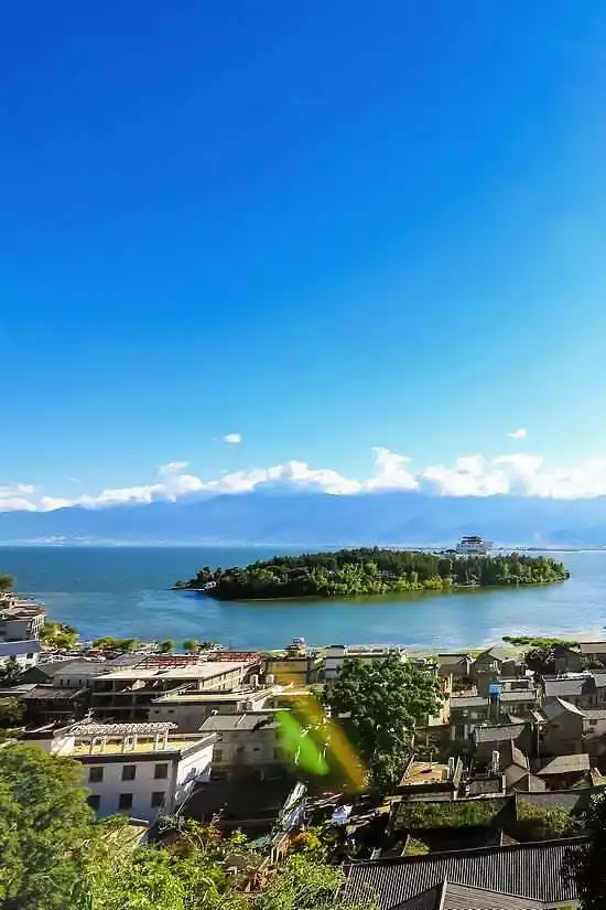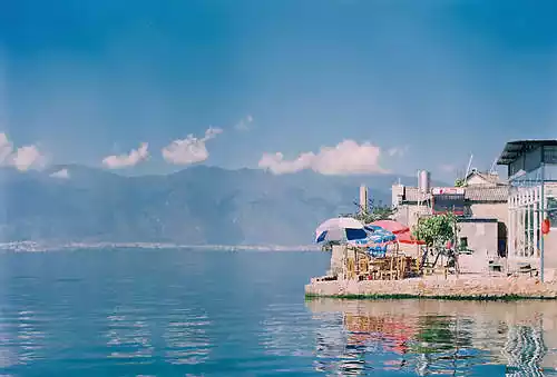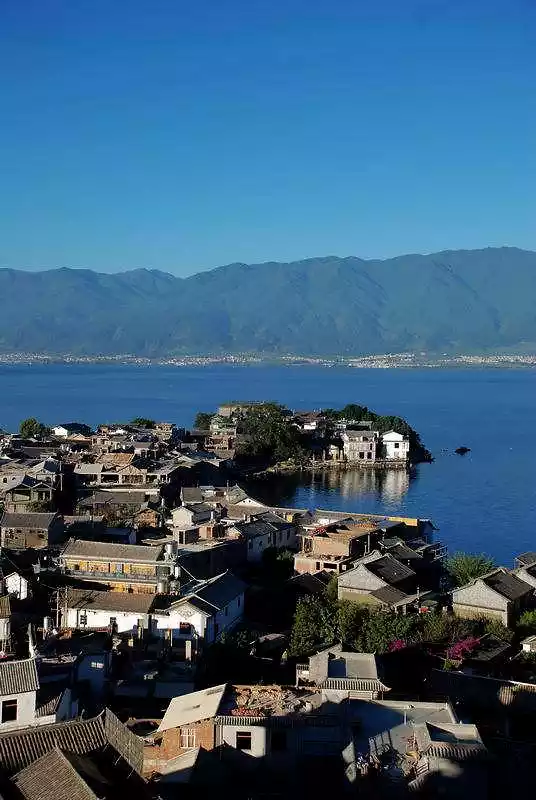 Looking around from the boat, there is a special feeling. Surrounded by mountains on three sides and the sea on one side. Jumping the nineteen peaks of Cangshan in the west, the door is close to the blue waves of Erhai Lake, the "Buddhist resort" Jizu Mountain in the east, and the "Penglai Immortal Island" Xiaoputuo in the south. The double corridor is really the soul of Dali.