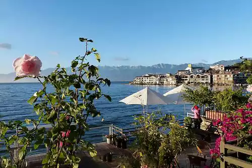 The next day, I pushed open the floor-to-ceiling windows along the coast, climbed onto the terrace, and finally saw the morning sun in the mist again, the water and sky were the same, and the sea breeze blew, which was very cool. The fatigue of the previous day has long since disappeared. Near 9 o'clock, after checking out, I couldn't wait to set off and go to the soul land of Dali, the final destination of this time, "Shuanglang".