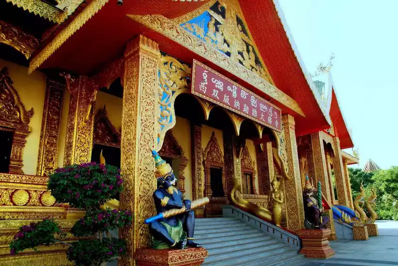 Mengle Great Buddha Temple was a royal temple in the ancient Dai Dynasty, and was one of the landmark buildings of the Twelve Banna, a symbol of Southern Buddhism. It has the largest bronze and gilded statue of Shakyamuni in Asia, located on a mountain that overlooks the entire city of Jinghong.