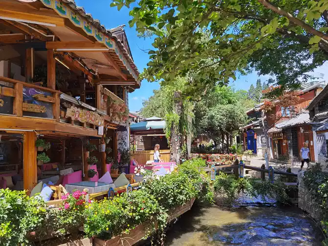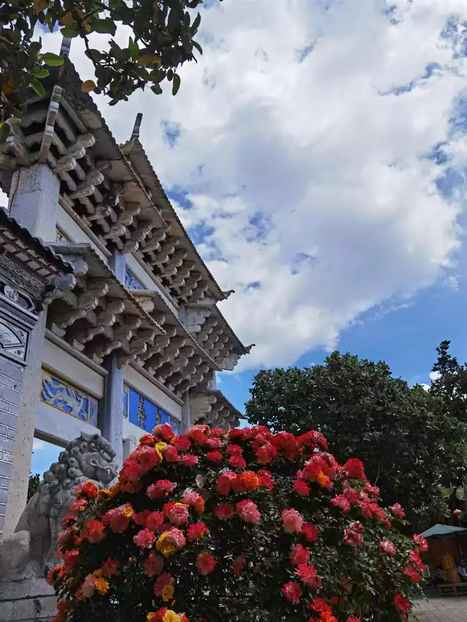 Back in Lijiang, I chose to stay in the Shanyi Art House in the ancient city, which did not allow parking, so I had to park my car in the parking lot at the south gate, but fortunately, the house would arrange someone to pick me up, so it was quite convenient. Entering the ancient city as usual, you need to check the health code, I can naturally be unimpeded, the scale of the Shanyi Art House is not large, and it is not very artistic, the guest rooms are not bad, quiet, tidy and clean. In the morning, there were few tourists on the streets of Lijiang during the epidemic, and there were not many shops open, which allowed me to slow down and wander in it, and I could see a wide variety of flowers blooming everywhere in the streets and alleys, and the colors were extremely bright, so that several times I wondered if these flowers were real. Walking leisurely in the ancient city of Dayan, unknowingly straying into the depths of succulents, next to the gurgling river in a single room, under the eaves, there are succulents everywhere, there are many varieties, although the colors and forms are quite similar, but these succulents have been carefully cultivated and carefully arranged by the owner, but they look so colorful and beautiful that I can't help but stop and linger in them. Because of the time, I didn't stay in Lijiang for too long, and near noon I chose a small restaurant next to the Muwang Mansion to take a nap, drink a cold drink, taste two plates of snacks, and then drive to the ancient city of Dali.