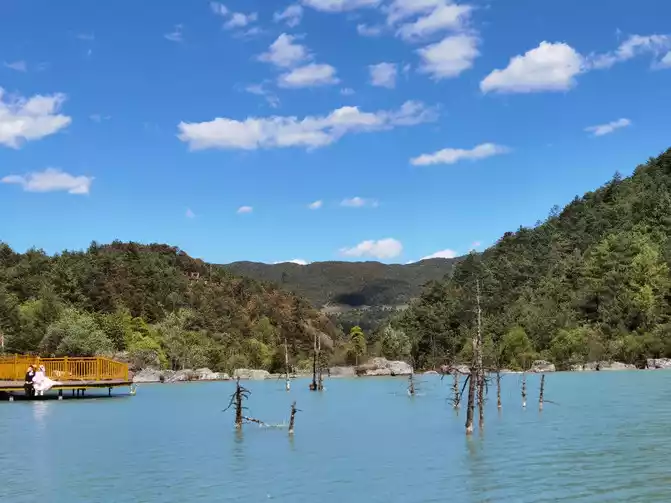 Blue Moon Valley is located at the foot of the Jade Dragon Snow Mountain, from a group of large and small lakes in the valley in a step-like shape, the lake water is blue milky white, as if a lake of milk is poured into blue ink by a group of naughty children, which is really beautiful. The vegetation around Blue Moon Valley is rich and diverse, with a variety of fruits looking up, and pine cones are large and of different shapes, so much so that it reminds me of how happy squirrels should be here.
