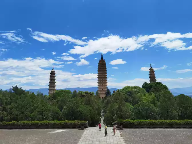 Readers who like Jin Yong's martial arts novels should be familiar with Dali, the romantic Duan Wangye is afraid that it will be the dream of many men, and the charming little prince Duan Yu will be the dream lover of many little girls. The short twelve words of "Xiaguan Wind, Shangguan Flower, Cangshan Snow, Erhai Moon" vividly summarize Dali's wind and snow, and it is this wind and snow that makes countless tourists yearn for it. I don't like the wind and snow, but I praise the Chongsheng Three Pagoda Temple, which was built during the period of King Nanzhao (824-859 AD), and first built the large pagoda "Qianxun Pagoda", which is 69.13 meters high, is a square dense eaves brick tower, with a total of 16 floors. Later, small towers in the south and north were built, both 42.19 meters high, a pair of octagonal brick towers, both of which were 10 levels, and then the grand Chongsheng Temple was built. More than ten years ago, I visited the Chongsheng Three Pagoda Temple, and the tour guide said that the small pagodas in the south and north were built in the Han Dynasty and were thin; The middle tower was built in the Tang Dynasty and was fat. Because the Han Dynasty was thin and beautiful, and the Tang Dynasty was fat, the architectural form of the three pagodas reflected the aesthetics of "Yan thin and fat" at that time. The tour guide's introduction used to make me believe it to be true, but now according to historical records, this statement is absurd. I am not a believer and not very religious, the reason why I praise the Chongsheng Three Pagodas Temple is because I am a practitioner in the construction industry, the Chongsheng Three Pagodas Temple is backed by Cangshan Mountain, facing Erhai Lake, as well as its multi-entry layout, magnificent architectural structure, the perfect combination of the three pagodas and Chongsheng Temple all amaze me.