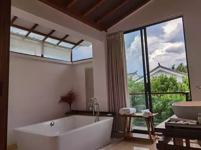 Dali No. 1 Courtyard is the last hotel I stayed in on this trip to Yunnan, it is said that singer Faye Wong must stay here in Dali, of course I am not Faye Wong, but I think that since Faye Wong must choose, the environmental conditions should not be bad. Dali No. 1 Courtyard is located in a corner of the ancient city of Dali, and the location is excellent, especially standing on the balcony of the bathroom, looking at the Cangshan Mountains in the distance and the ancient city in front of you up close, which is inevitably refreshing; The windows in the bathroom are bright and clean, the tulle curtains are closed, a pool of warm water is filled, half lying in the pool, through the bright high window, the beautiful scenery of the Cangshan Mountains comes into view, and I suddenly feel that the fatigue of the whole body is relieved, so uncomfortable. Since it is still during the epidemic, the rare tourists in the ancient city of Dali are sparse, and the noise of the past is less.