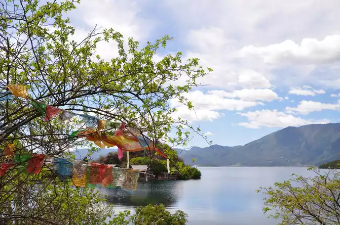 The Rig Peninsula is located at the foot of the Goddess Mountain, called the Peninsula, in fact, it is more like a narrow short embankment extending into the lake, the "Dear Inn" is located on the Rig Peninsula, and the Rig Peninsula is also known to more people because of Hunan Satellite TV's "Dear Inn" program. There is an observation deck on the Rig Peninsula, which is an excellent shooting location for the panoramic view of Lugu Lake, and the best shooting time is in the morning and evening. There are many characteristic homestays on the Rig Peninsula, although the Liuyue-Lehaiju I stayed in is not near the lake, but it is quite distinctive, a bit of hiding in a small building into a unified taste, and it is also a good place for Internet celebrities to take pictures.