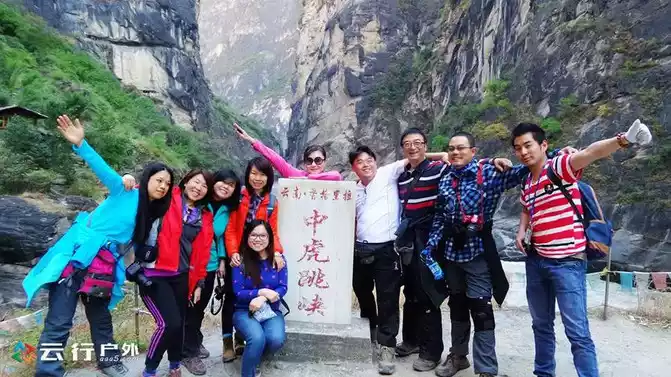 It takes about an hour to reach the bottom of the valley, and it is also very memorable to take a group photo in front of the stone monument of Zhonghu Leaping Gorge.