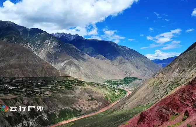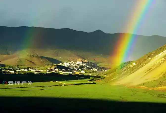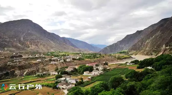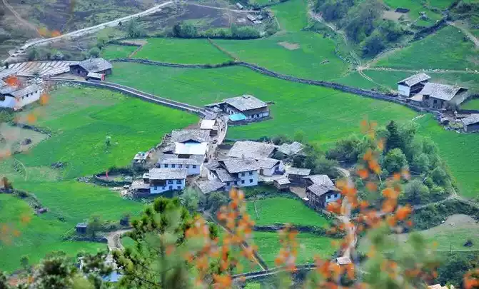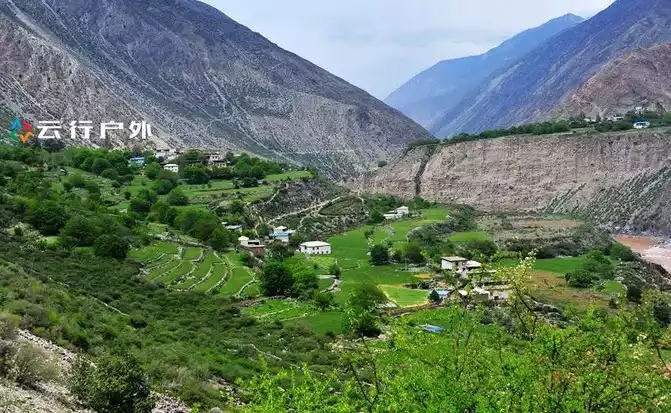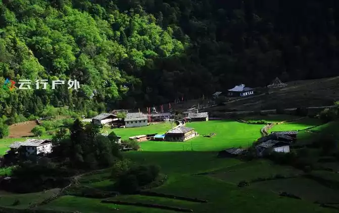 During the downhill hike, you will vaguely see some Tibetan-style houses surrounded by green fields, which is actually a rain collapse village. It's just that this angle is special.