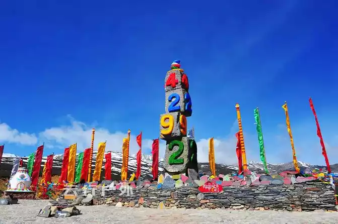 This is the sign of the newly built Baima Snow Mountain Pass, and the height of 4292 meters is particularly eye-catching under the blue sky. This is also the first snow-capped mountain pass higher than 4,000 meters through which the Yunnan-Tibet Line passes.