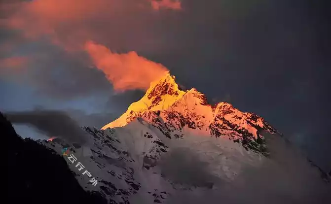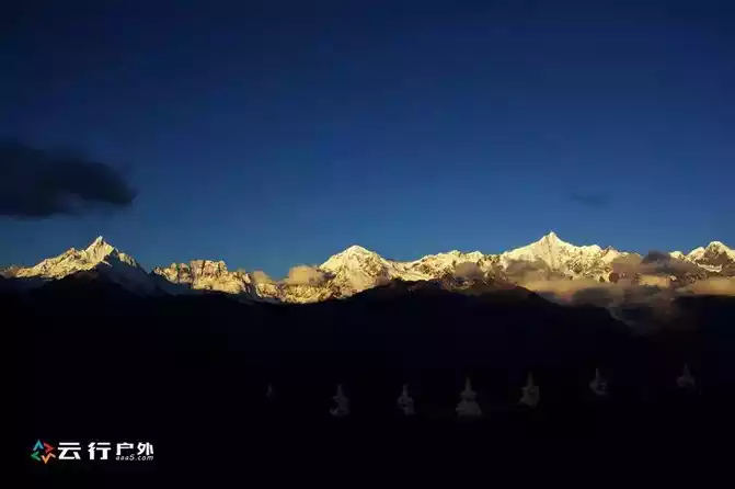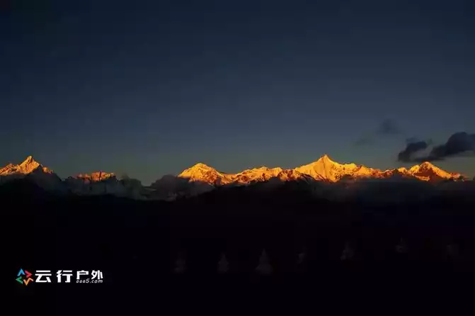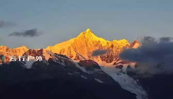 In order to enjoy the shocking wonders of Rizhao Jinshan, you must get up early today and wait for the first ray of sunlight to shine on the main peak of Meili Snow Mountain at the observation deck of Feilai Temple or on the roof of the hotel, in fact, Meili Snow Mountain is in the west, the sun rises from the east, first illuminating the peak of Kawagbo, the main peak of Meili Snow Mountain, and then the gold slowly moves down, and finally the mountain is all illuminated in gold.