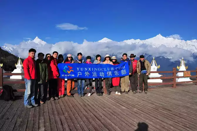 to take a group photo in front of the spectacular Meili Snow Mountain at this moment
