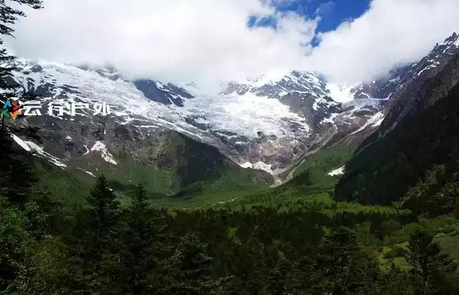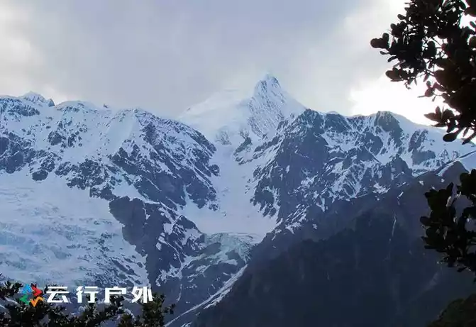 three hours of hiking, you can see the white glacier on the Sixteen Venerable Peak, and the mountain pass below the glacier is where the glacial lake is located.