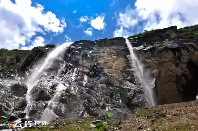 The waterfall in summer Due to the large melting of the glacier, the water volume of the waterfall is larger, and it falls vertically from the hanging shore of more than 3,800 meters above sea level. There is really a feeling that the Milky Way is falling for nine days.