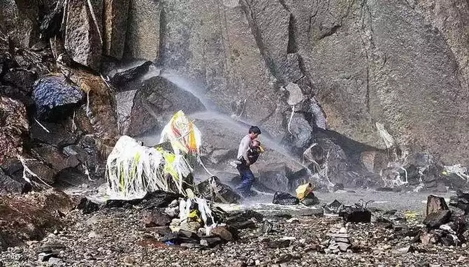 After worshiping the waterfall, the most sacred ritual is to receive the baptism of the holy water of the waterfall, which is known as the nectar of Meili Snow Mountain, which can cleanse the five poisons of people's body and mind. Therefore, you can't use an umbrella or a hat in the waterfall, the more water you pour, the better, generally three circles, pious people can go around thirteen times, and the most can reach 108 circles.