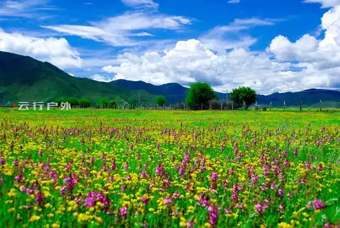 Shangri-La's sea level is 3,300 meters, and the winters are long and cold. In summer, the Shangri-La grassland has already opened a thick winter coat, and the mountains and rivers are full of vibrant scenery, and all kinds of wildflowers on the pasture have begun to compete for beauty.