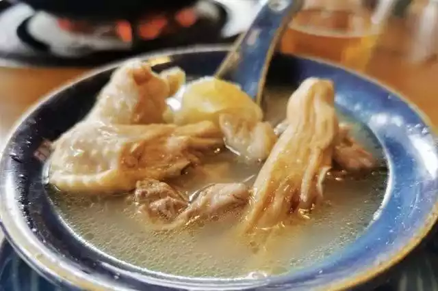 which is stewed with a strong fresh aroma from the charcoal base of the fire pond, and