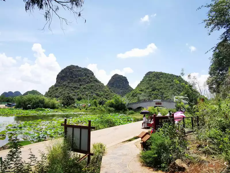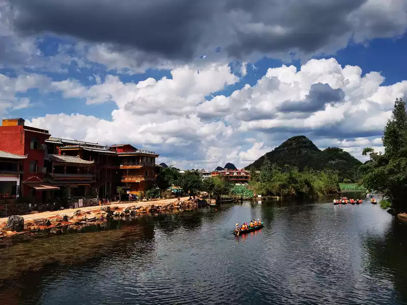 Today's main itinerary is Qinglong Mountain - Torch Cave - take a painted boat to visit Puzhehei Lake
